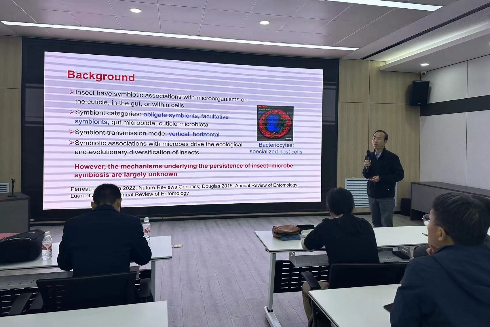 栾军波教授作题为《共生菌调控粉虱及其寄生蜂生殖的分子机制》的学术报告。报告主要介绍了烟粉虱共生菌在调控烟粉虱生长、发育、营养、传毒等方面的最新研究成果。