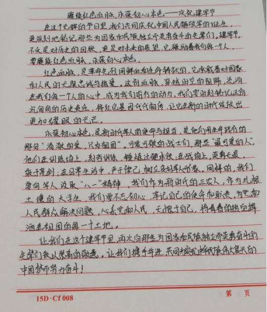 此次征文活动不仅加深了同学们对“八一”建军节意义的理解,更在无形中增强了大家的国防意识和爱国情怀。我们更加深刻地认识到了军人的伟大与不易,也更加坚定了自己为国家和民族奋斗终生的决心。