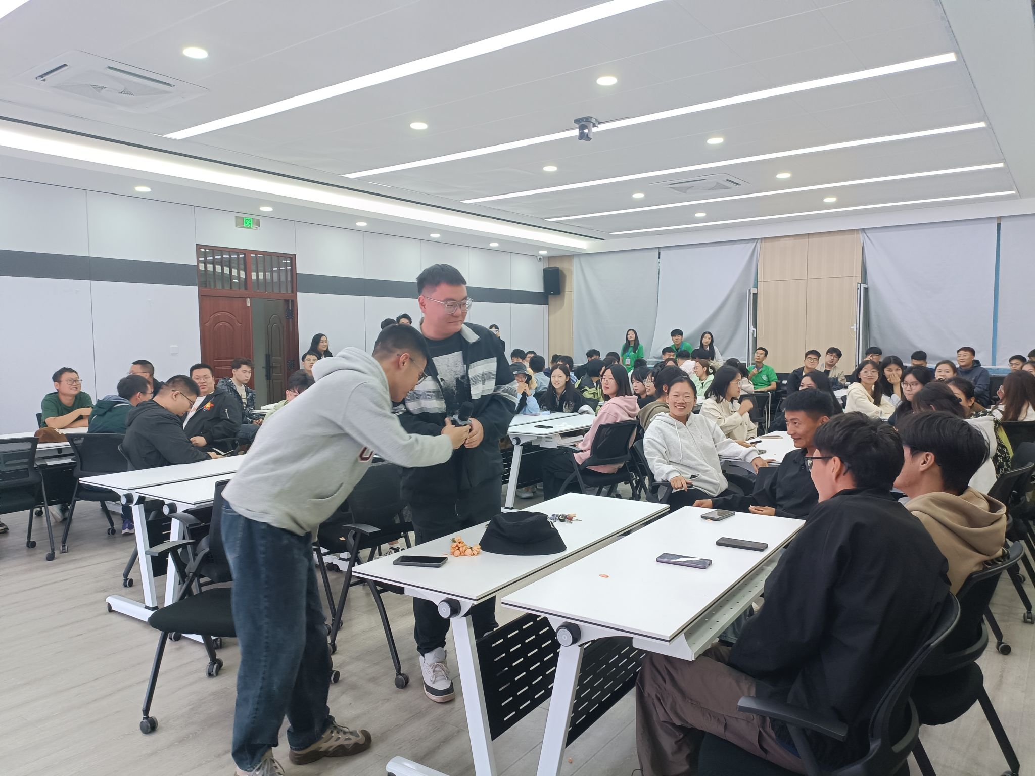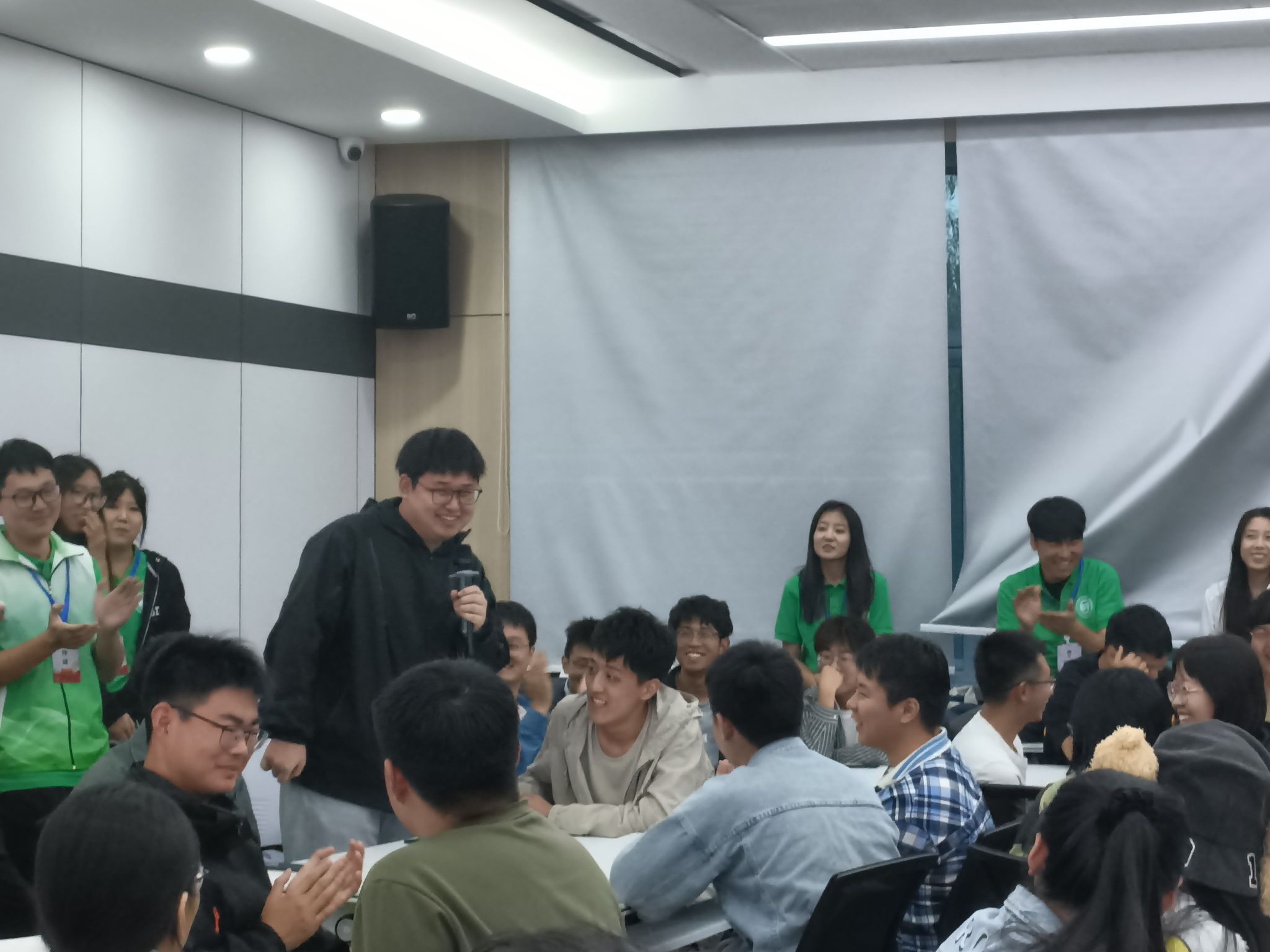 研究生团委副书记2023级颜硕同学在最后举行了”击鼓传花”游戏,在欢声笑语中帮助新生迅速适应新环境,让同学们相互认识,打破同学们初见时的局促,增进同学间的相互了解,同时树立班级凝聚力。