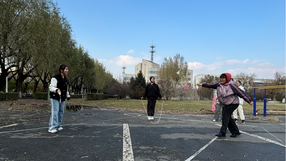 在“争分夺秒”环节中,团队三人通力合作,一人跳绳,两人传球。
