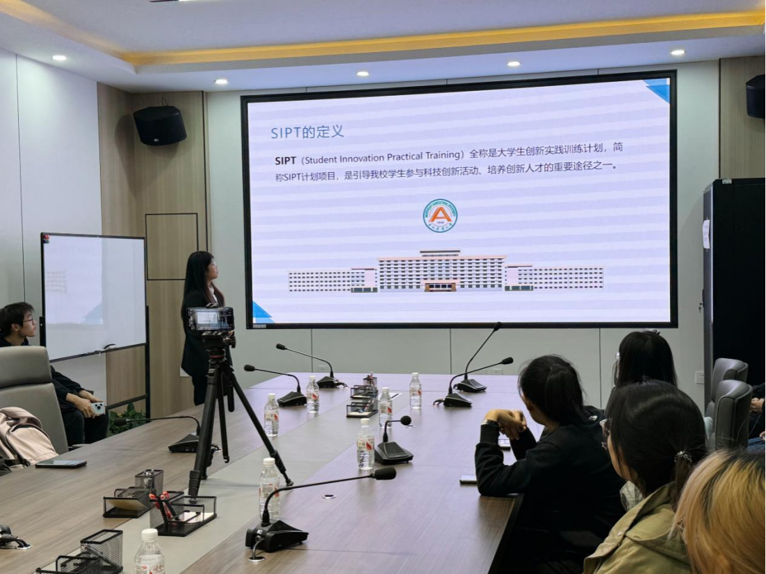 在宣讲会的开始,团委科技创新部部长于丽欣从SIPT的基本知识入手,分点讲述推荐大家参加SIPT理由,意义与优势,并介绍了参加比赛的选题、立项、审核一系列流程以及申报条件,项目要求等,让同学们对SIPT项目有了全面的了解。