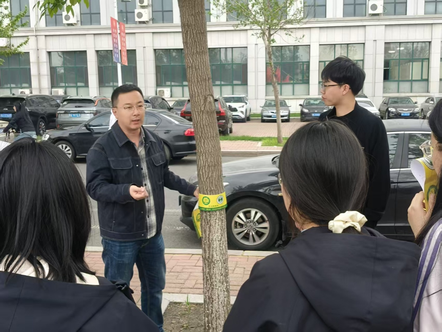 活动中,田镇齐、陈志强老师在现场展示如何标准粘贴胶带,同时向同学们讲解此次物理防控的原理。为保障同学们的安全,两位老师全程陪同,对同学工作进行纠正,同学们对防控树木拍照记录监控树木健康情况。