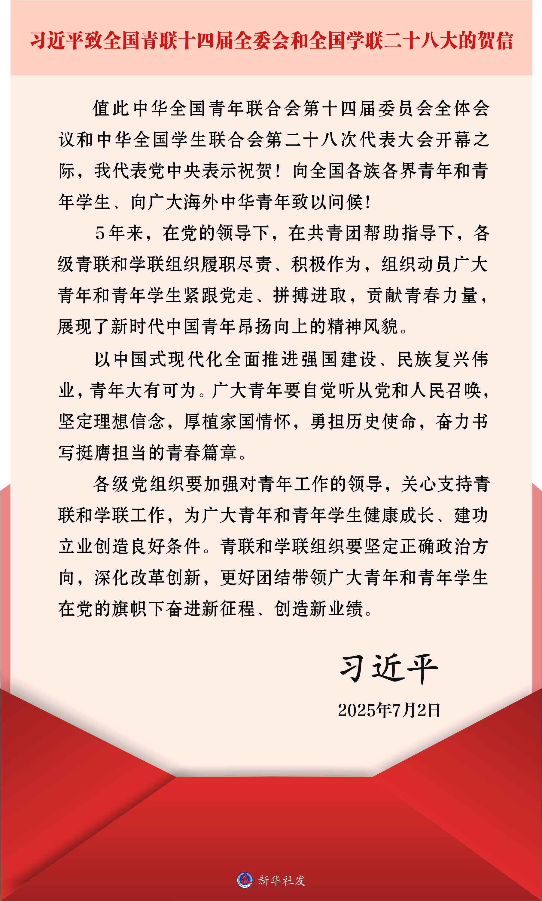 【员工会】习近平致全国青联十四届全委会和全国学联二十八大的贺信