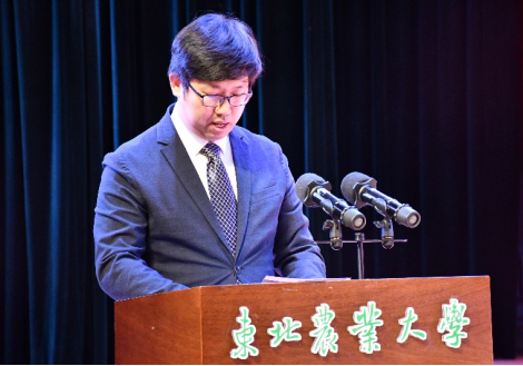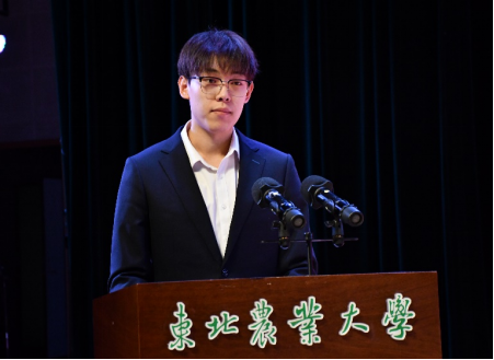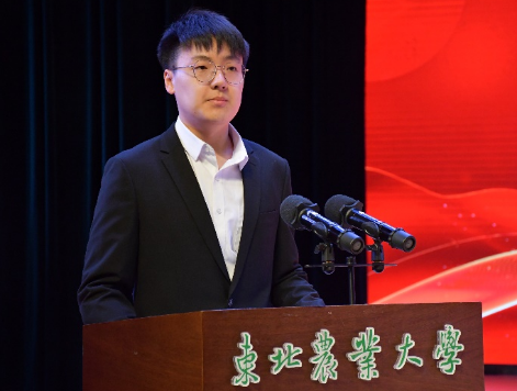本科生获奖代表植保2104班张弘弛上台发言。他表示,回首过去,我们披荆斩棘,硕果累累;展望未来,我们要以更加饱满的热情、更加坚定的信心,迎接新的挑战与机遇。同时呼吁同学们要树立家国情怀、自觉明德修身、立志奉献“三农”,胸怀国家富强和民族振兴的中国梦。